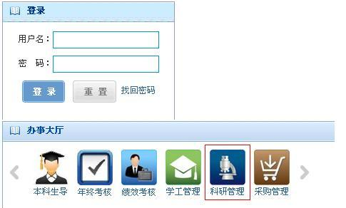 方式一:通过学校信息门户:登录门户,选择科研管理系统